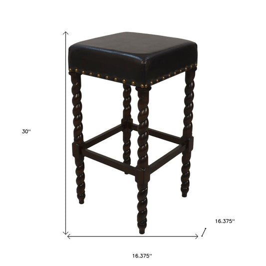 30" Black And Espresso Faux Leather And Solid Wood Backless Bar Height Bar Chair