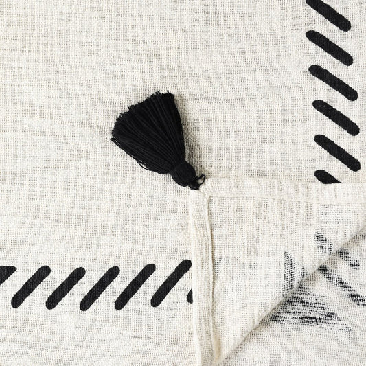 60" X 50" Black and White Woven Cotton Geometric Throw Blanket with Tassels