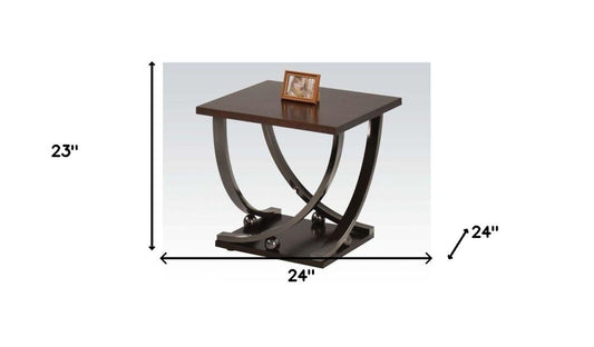 19" Black And Brown Oak Manufactured Wood And Metal End Table