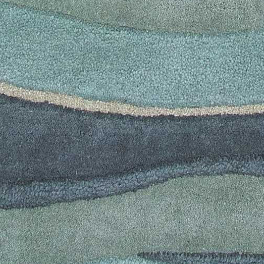 8' Ocean Blue Teal Hand Tufted Abstract Waves Indoor Runner Rug