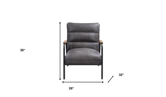 26" Gray and Black Top Grain Leather Tufted Lounge Chair