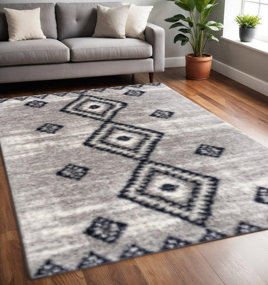 5' X 8' Gray And Navy Boho Chic Area Rug
