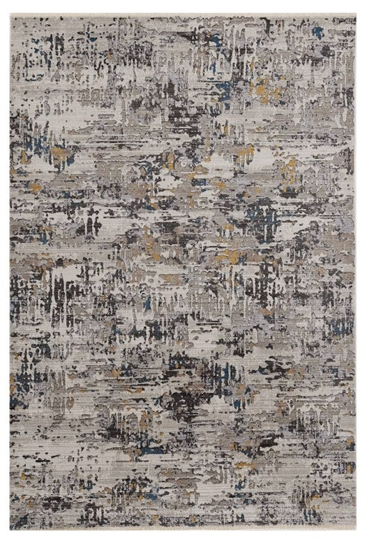 5' X 8' Gray Black And Gold Abstract Distressed Area Rug