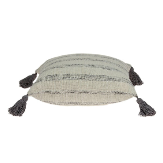 18" Beige and Gray Striped Cotton Throw Pillow With Tassels