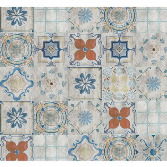2' X 5' Gray Blue And Rust Mosaic Tile Printed Vinyl Area Rug With UV Protection
