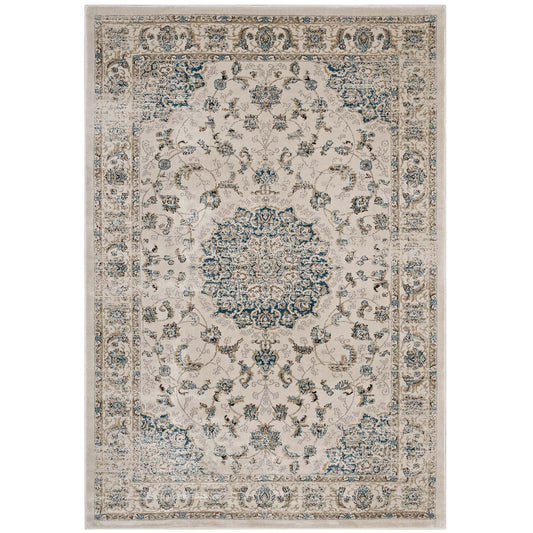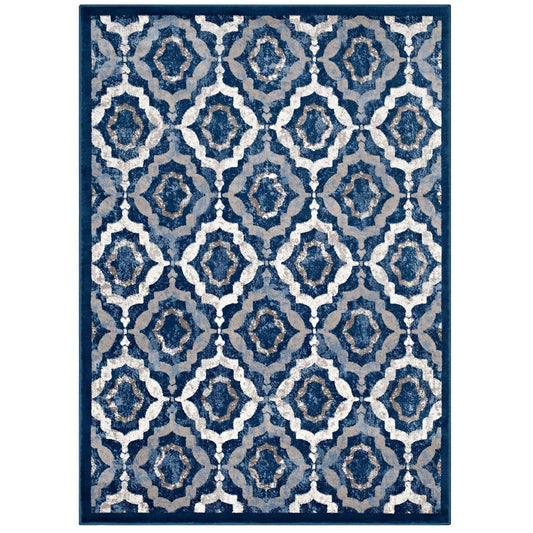Modway Outlet Kalinda Rustic Vintage Moroccan Trellis 5x8 Area Rug by Modway Living Room Rugs Beige Moroccan Blue and Ivory - R-1128B-58