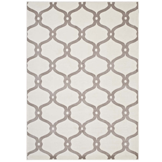 Modway Outlet Beltara Chain Link Transitional Trellis 5x8 Area Rug by Modway Living Room Rugs Beige and Ivory - R-1129C-58