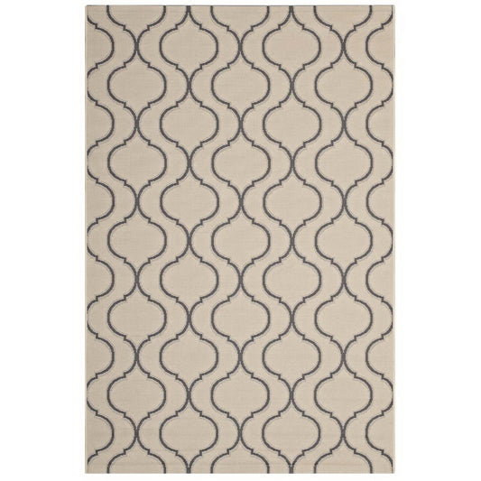 Modway Outlet Linza Wave Abstract Trellis Indoor and Outdoor 5x8 Area Rug by Modway Living Room Rugs Beige and Gray - R-1136A-58