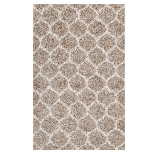 Modway Outlet Solvea Moroccan Trellis 5x8 Shag Area Rug by Modway Living Room Rugs Beige and Ivory - R-1143F-58