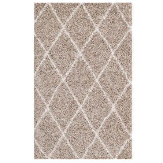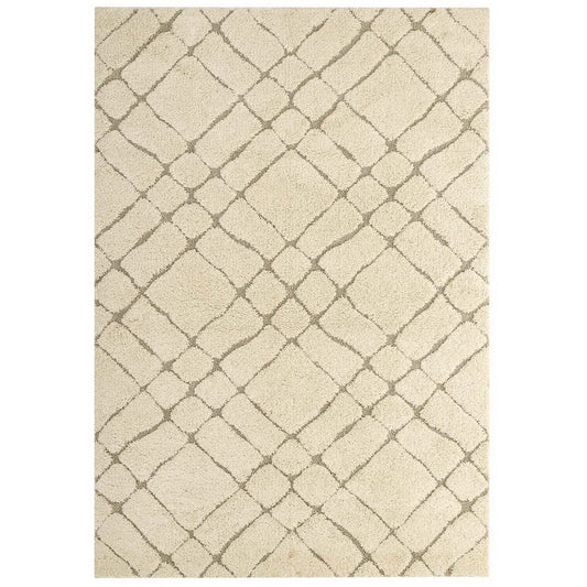 Modway Outlet Toryn Diamond Lattice 5x8 Shag Area Rug by Modway Living Room Rugs Beige and Ivory - R-1144F-58