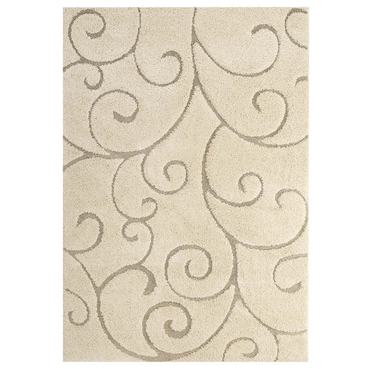 Modway Outlet Jubilant Sprout Scrolling Vine Shag 5x8 Area Rug by Modway Living Room Rugs Creame and Beige - R-1148A-58