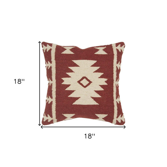 18" Brown and Beige Geometric Jute Wool Blend Throw Pillow