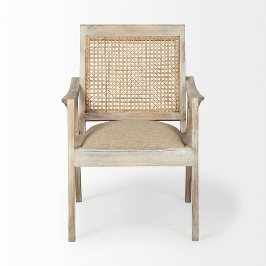 Reduced Price28" Cream and Natural Fabric Distressed Arm Chair