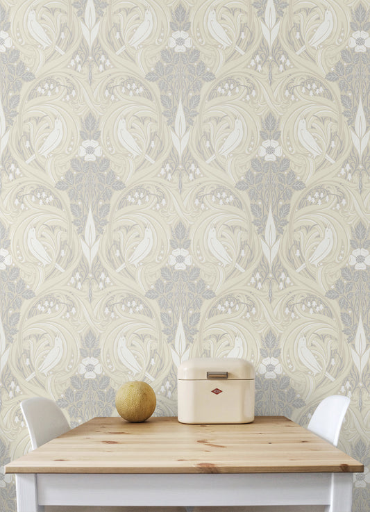 Etten Studios Legacy Prints Bird Scroll Botanical Vintage Beige Matte - ET12205