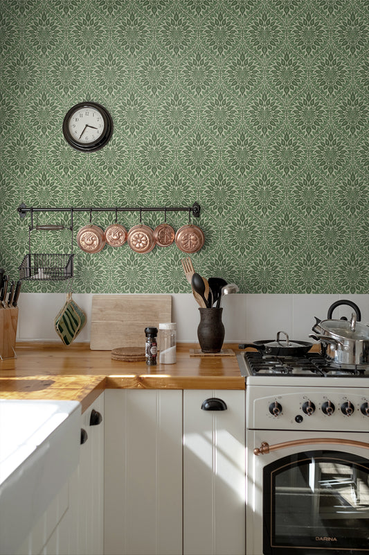 Etten Studios Legacy Prints Ogee Flora Floral Vintage Green Matte - ET12604