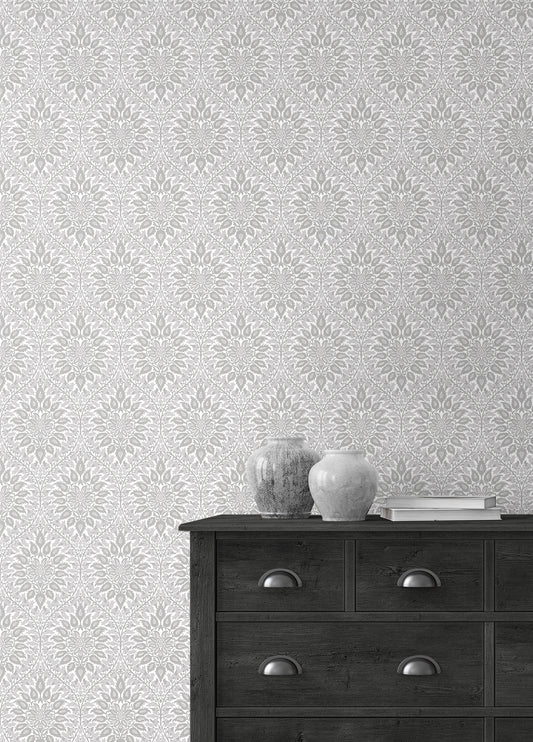Etten Studios Legacy Prints Ogee Flora Floral Vintage Grey Matte - ET12607