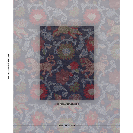 SCALAMANDRE DRAGON TABLEAU FABRIC PERSIMMON BLUE - SC 000427327 NEW SKU # SC273270004