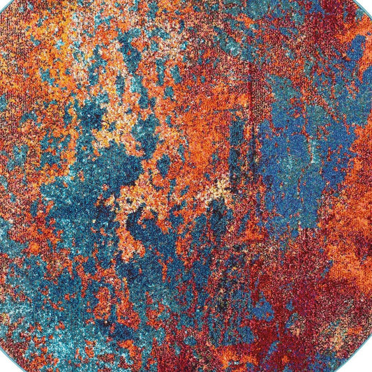 5' X 5' Sunset Round Abstract Power Loom Non Skid Area Rug