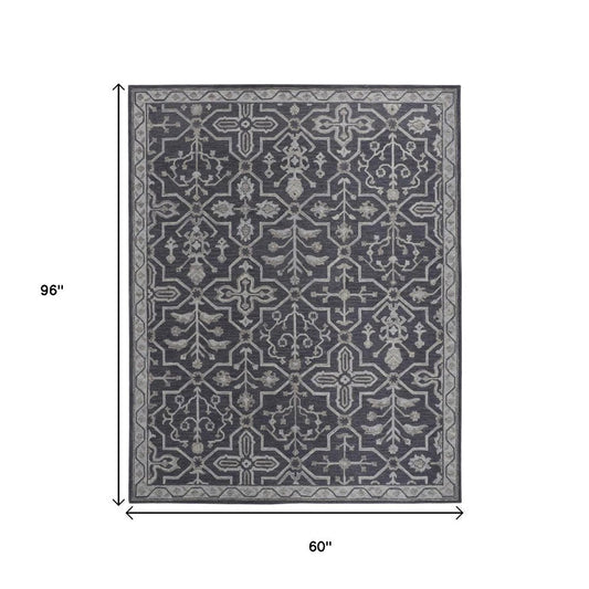 5' X 8' Ivory And Gray Wool Floral Tufted Handmade Stain Resistant Area Rug