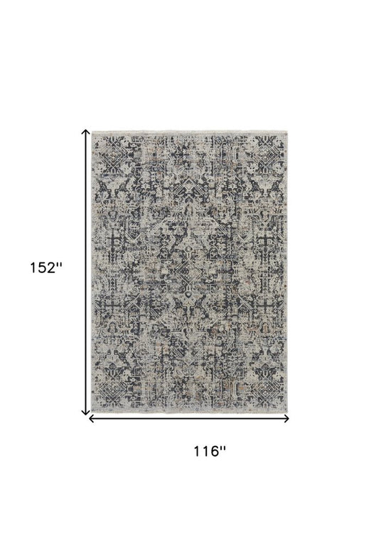 10' X 13' Silver And Black Floral Power Loom Distressed Area Rug