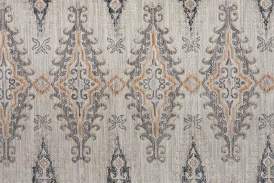 8' X 10' Gray and Ivory Abstract Power Loom Distressed Non Skid Area Rug With Fringe