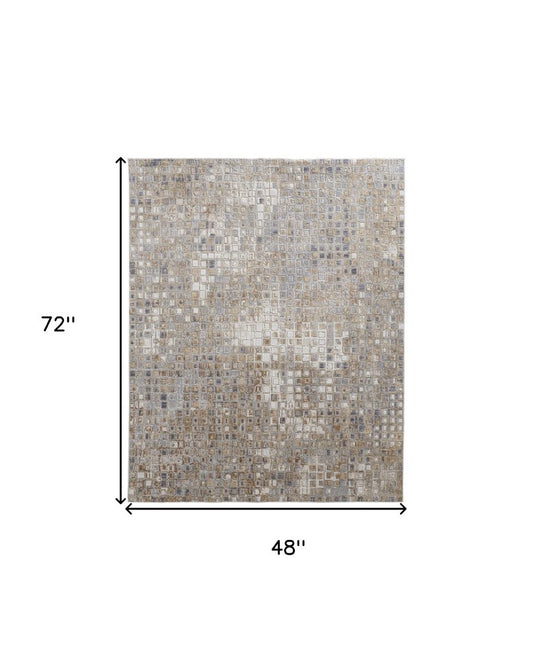4' X 6' Taupe Silver And Tan Abstract Power Loom Area Rug