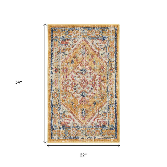 Reduced Price4' Yellow And Ivory Medallion Round Rug