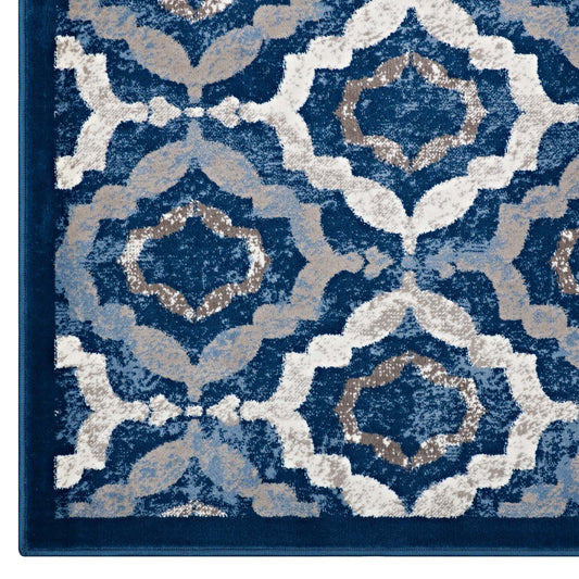 Modway Outlet Chiara Distressed Floral Lattice Contemporary 5x8 Area Rug by Modway Living Room Rugs Moroccan Blue - R-1131A-58