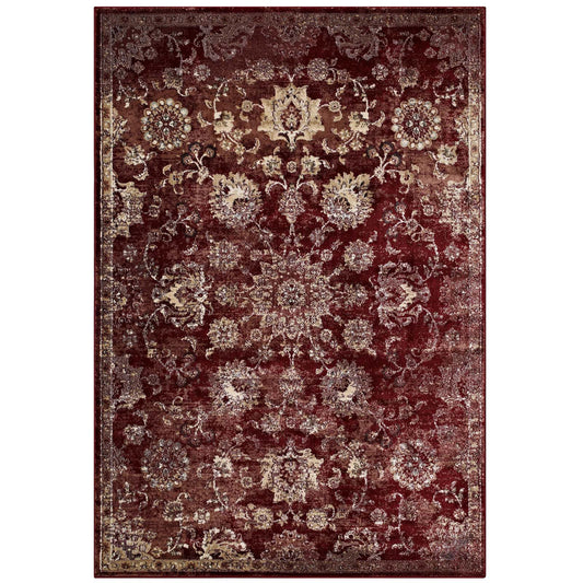 Modway Outlet Cynara Distressed Floral Vintage Medallion 5x8 Area Rug by Modway Living Room Rugs Burgundy and Beige - R-1111A-58