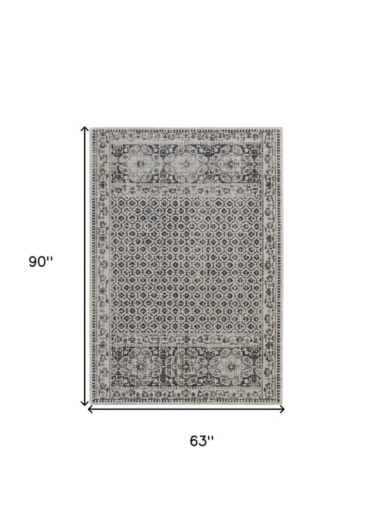 5' X 8' Gray Ivory And Taupe Abstract Stain Resistant Area Rug