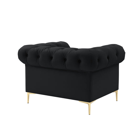 25" Black And Gold Velvet Arm Chair