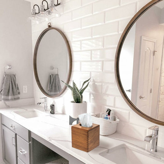 Known for its durability, water resistance, and rich, golden tone, teak wood is the ideal choice for bathroom environments. Its natural oils protect it from moisture and aging, while its grain pattern adds earthy texture to your space.
