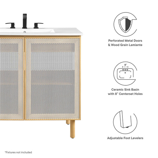 Modway - Calla 36" Perforated Metal Bathroom Vanity by Modway Bathroom Vanities Brown - EEI-6678-WHI-OAK