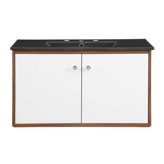 Modway Outlet Transmit 36" Wall-Mount Bathroom Vanity by Modway Bathroom Furniture Walnut Black - EEI-5393-WAL-BLK
