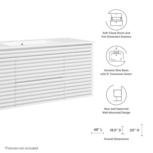 Modway Outlet Render 48" Wall-Mount Bathroom Vanity by Modway Bathroom Furniture White White - EEI-5801-WHI-WHI