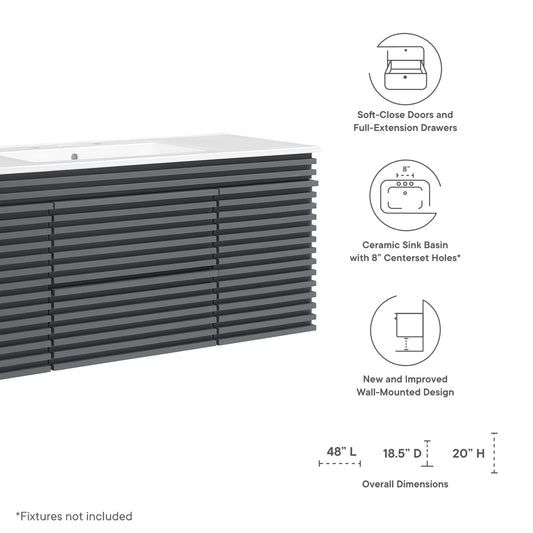 Modway Outlet Render 48" Wall-Mount Bathroom Vanity by Modway Bathroom Furniture Charcoal White - EEI-5802-CHA-WHI