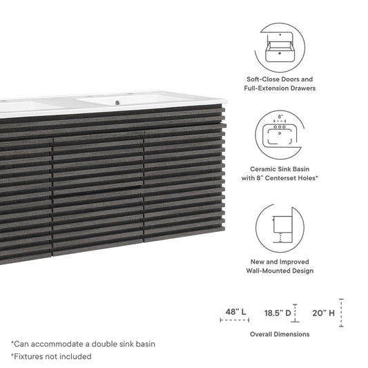 Modway Outlet Render 48" Wall-Mount Bathroom Vanity by Modway Bathroom Furniture Gray Black - EEI-5801-GRY-BLK