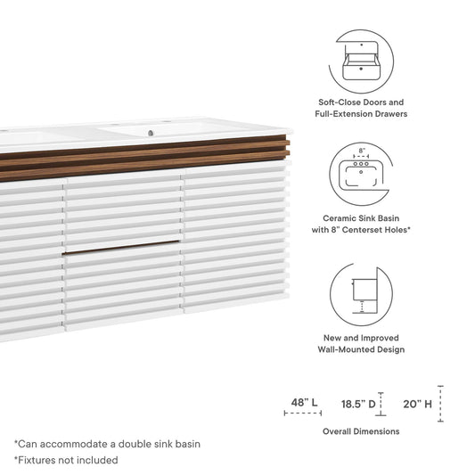 Modway Outlet Render 48" Wall-Mount Bathroom Vanity by Modway Bathroom Furniture White Walnut White - EEI-5802-WHI-WAL-WHI