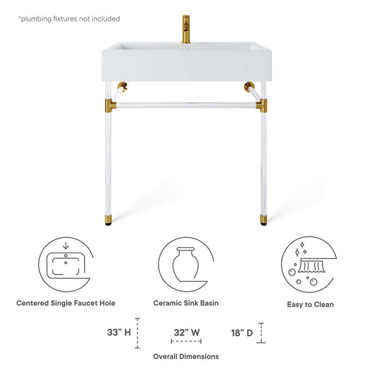 Modway Outlet Redeem 32" Acrylic Wall-Mount Bathroom Vanity by Modway Bathroom Furniture Clear White - EEI-5539-ACR-WHI