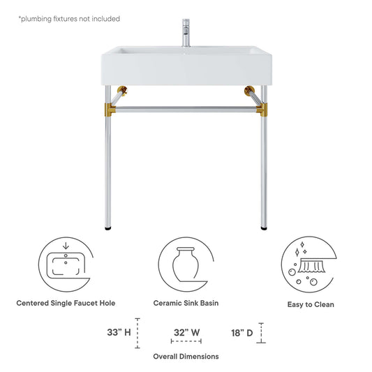 Modway Outlet Quantum 32" Bathroom Vanity Cabinet (Sink Basin Not Included) by Modway Bathroom Furniture Gold - EEI-6132-GLD