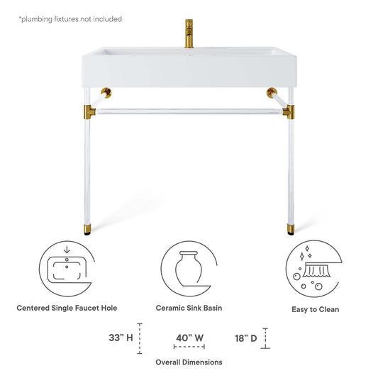 Modway Outlet Redeem 40" Acrylic Wall-Mount Bathroom Vanity by Modway Bathroom Furniture Clear White - EEI-5543-ACR-WHI