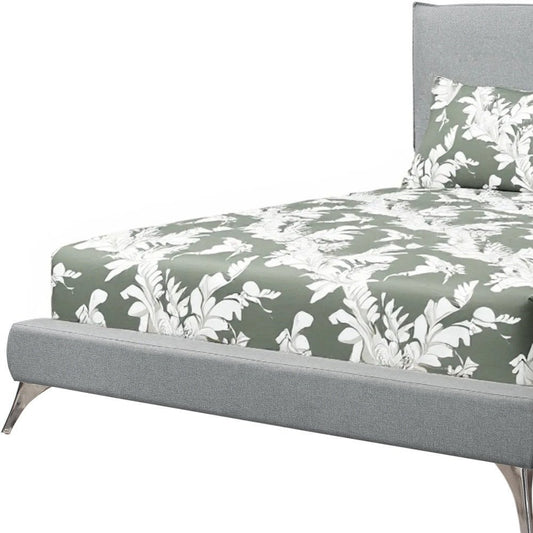 Solid Wood Queen Tufted Gray Upholstered Linen Bed With Nailhead Trim