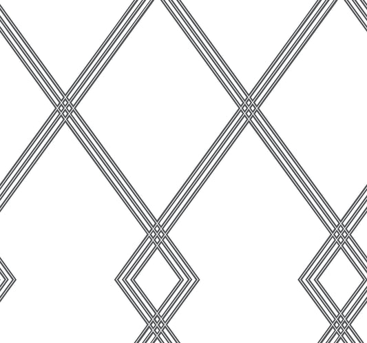 York Wallcoverings Black & White, III Ribbon Stripe Trellis White & Black Wallpaper Trellis & Lattice Trellis & Lattice White & Black - CY1509