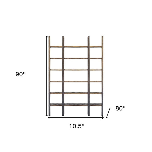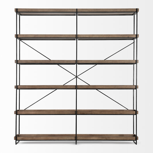 Reduced Price90" Black And Brown Iron and Wood Six Tier Bookcase