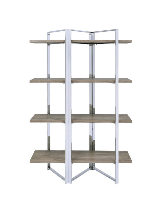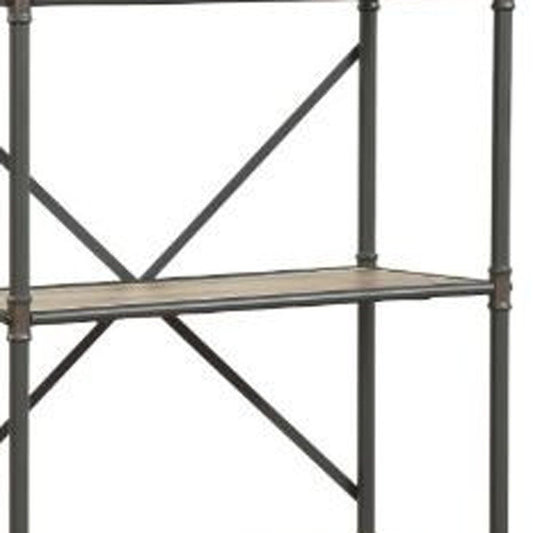 54" Gray And Silver Metal and Wood Four Tier Etagere Bookcase