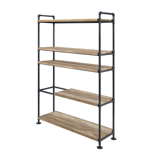 Our Reduced Price65" Natural And Black Metal and Wood Five Tier Etagere Bookcase