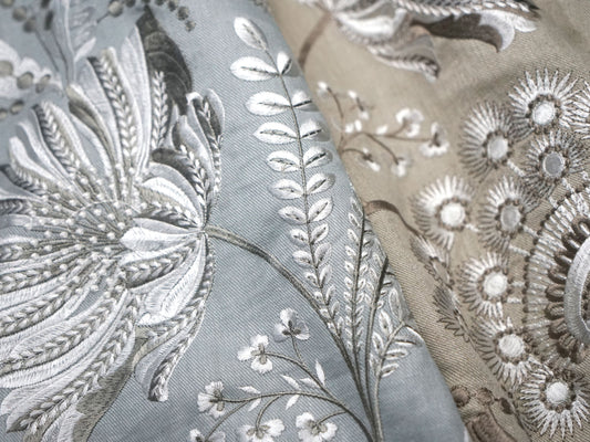 SCALAMANDRE SERAPHINE EMBROIDERED SILK FABRIC SKY AND STONE - SC 000227325 NEW SKU # SC273250002