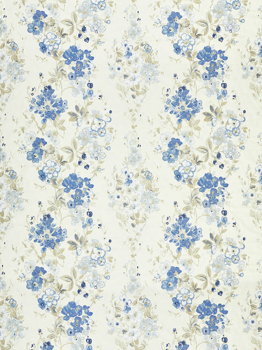 SCALAMANDRE KEW GARDENS WARP PRINT FABRIC BLUES ON IVORY - SC 000216611 NEW SKU # SC166110002