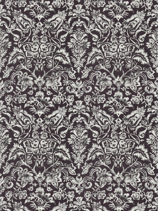 SCALAMANDRE MANSFIELD DAMASK PRINT FABRIC GRAPHITE & SILVER - SC 000316598 NEW SKU # SC165980003