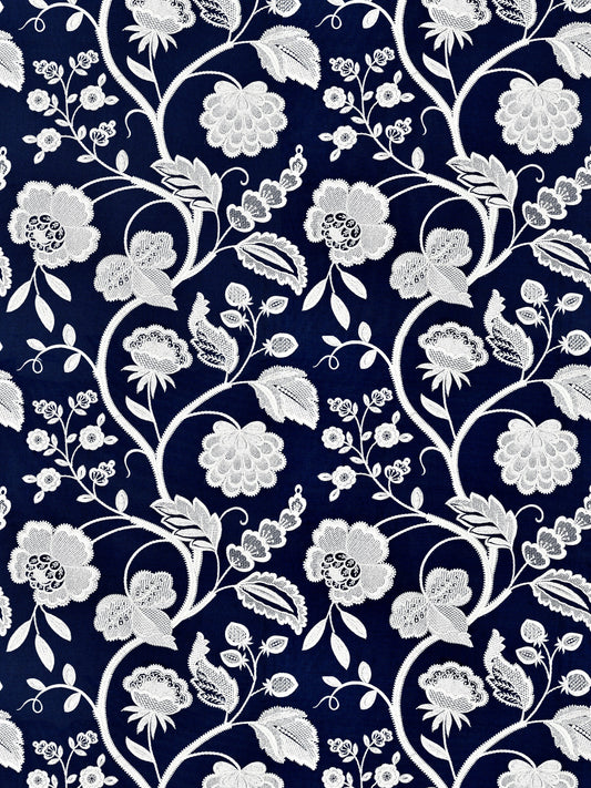 SCALAMANDRE KENSINGTON EMBROIDERY FABRIC NAVY - SC 000527151 NEW SKU # SC271510005
